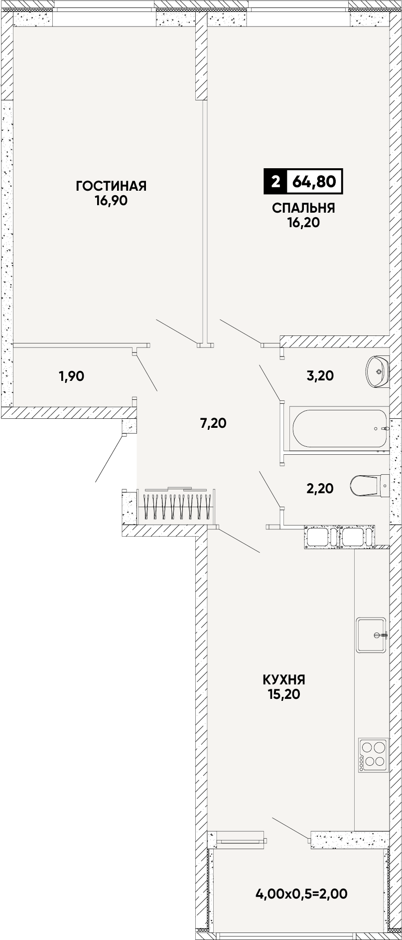 Площадь: 64.8 м²
