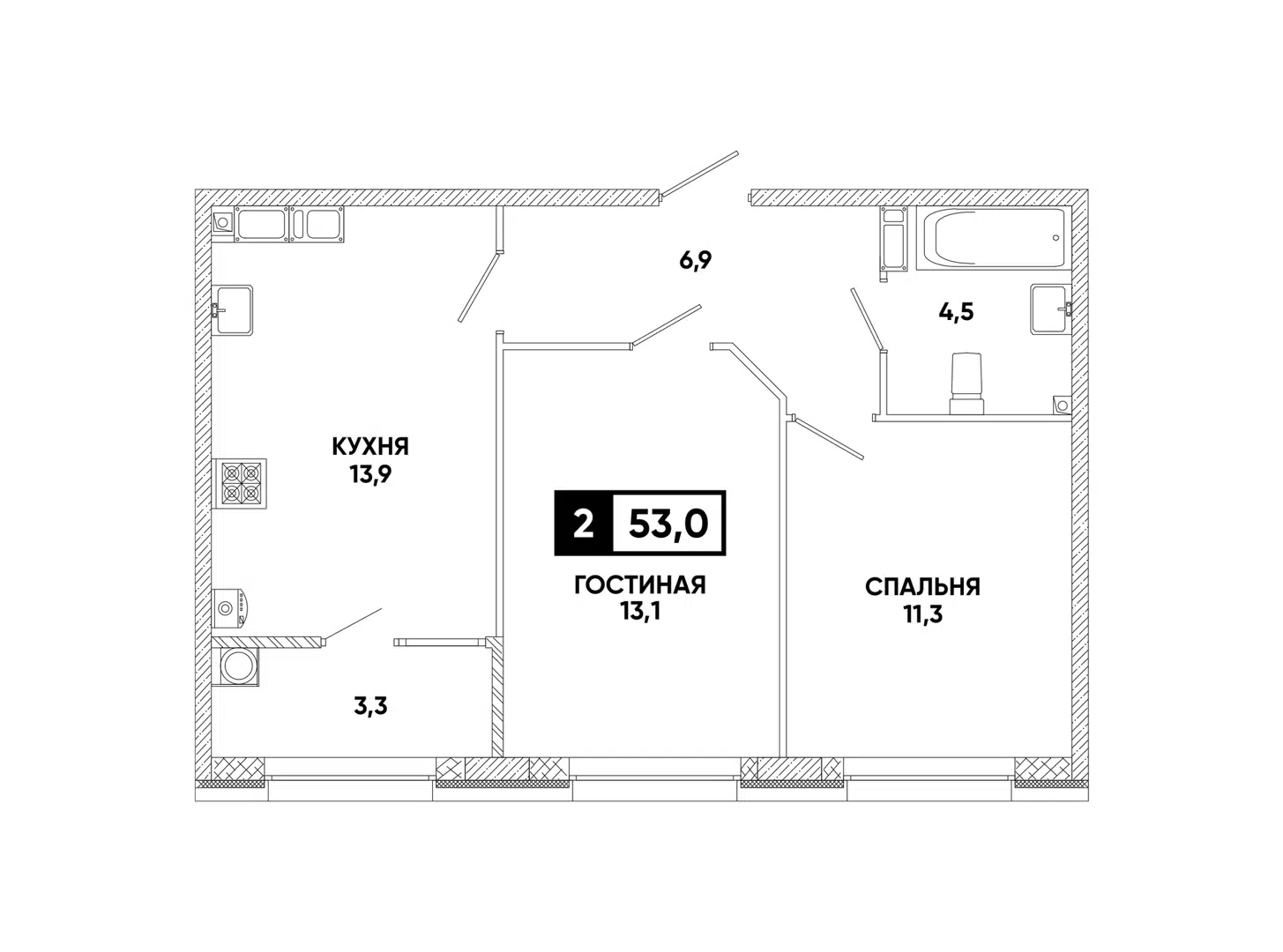 Площадь: 53 м²