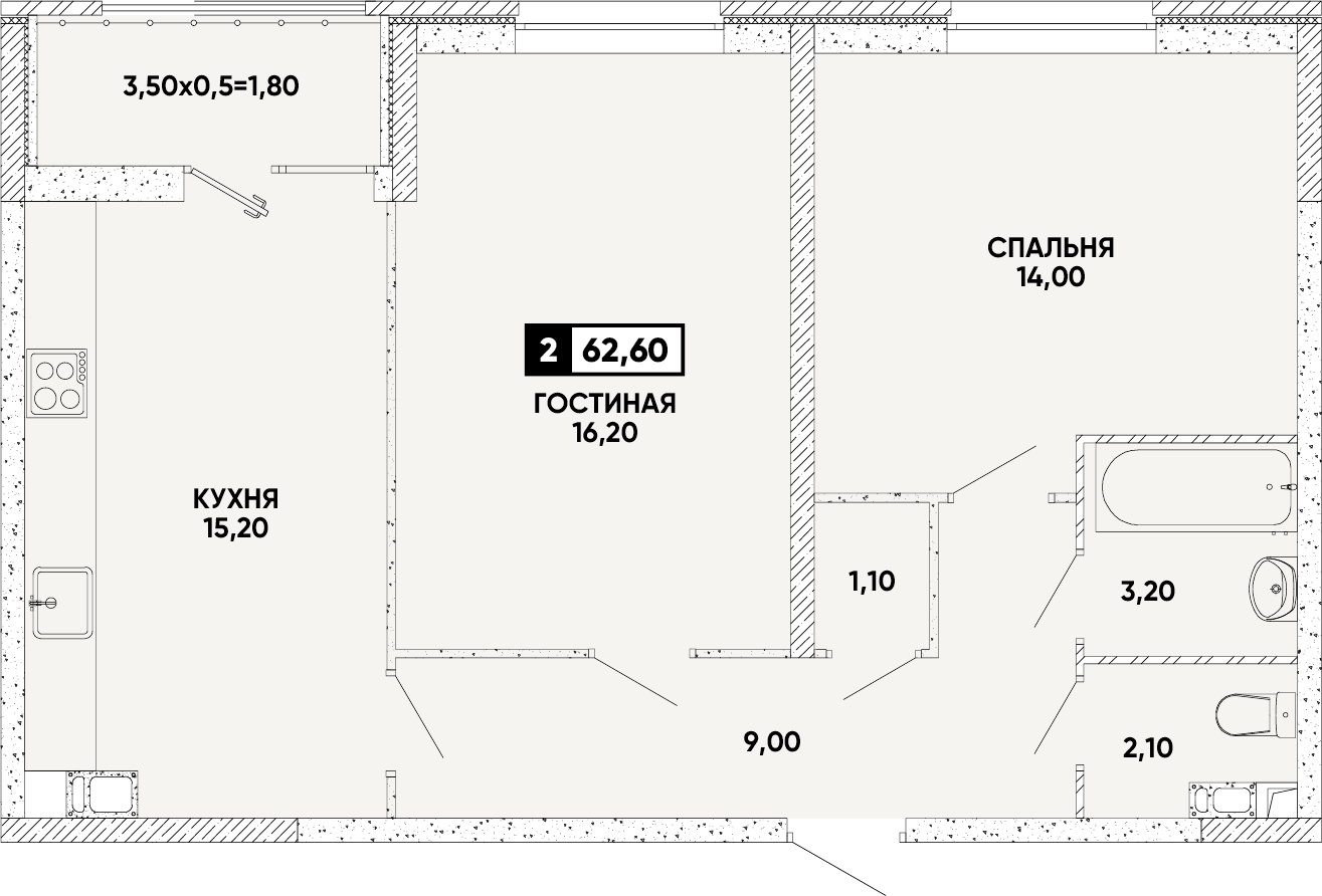 Площадь: 62.6 м²