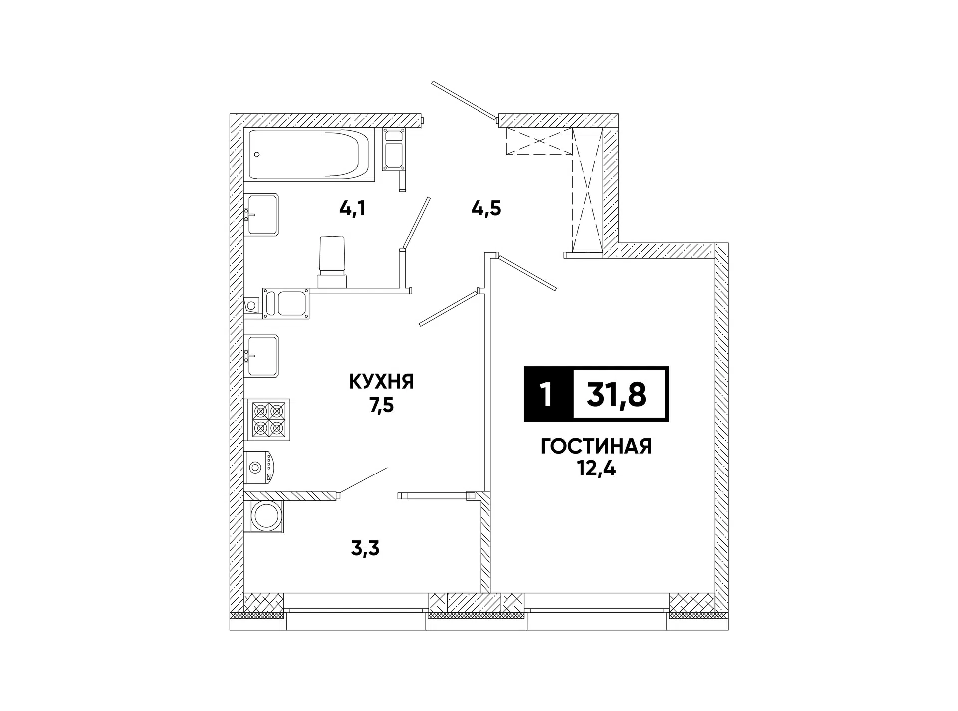 Площадь: 31,8 м²