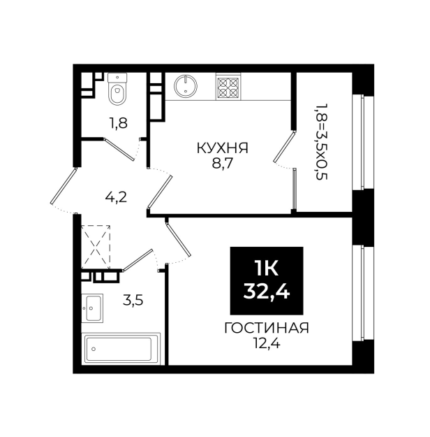 Площадь: 32,4 м²