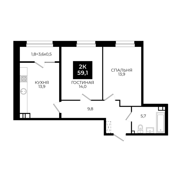 Площадь: 59,1 м²