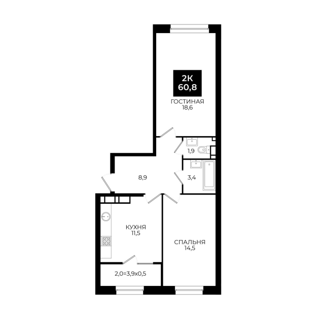 Площадь: 60,8 м²