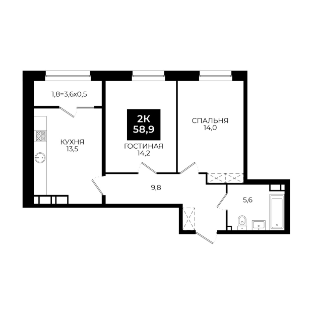 Площадь: 58,9 м²
