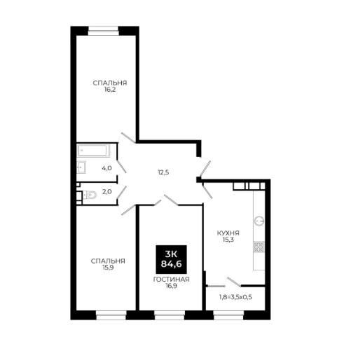 Площадь: 84,6 м²