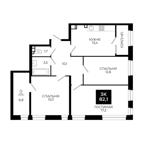 Площадь: 82,1 м²