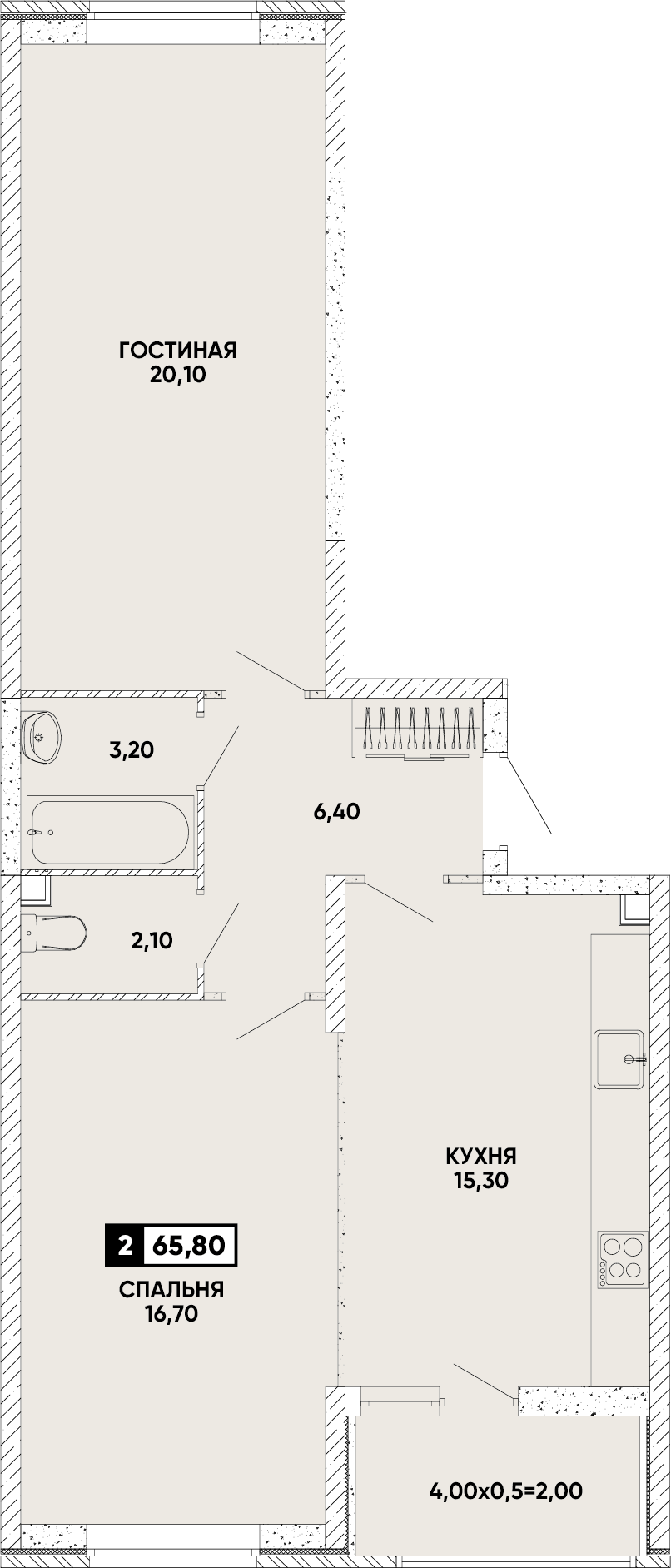 Площадь: 65.8 м²